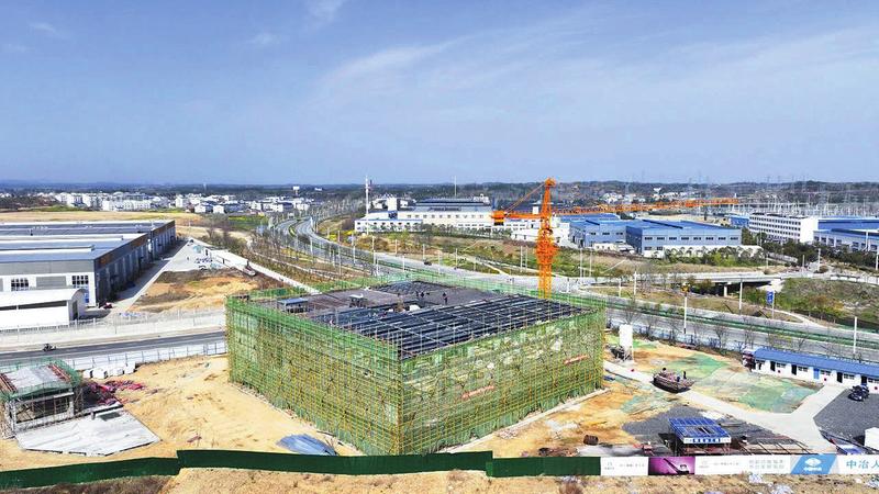 招商展示中心项目即将封顶,工人们正在做最后的冲刺。该项目占地面积10亩,建筑面积4976平方米,会议室、多媒体展厅等功能齐全。建成后,园区综合配套设施将极大增强。
