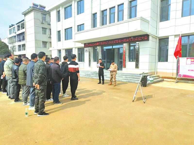 3月26日,随县三里岗镇武装部举行2024年基干民兵集合点验大会及新民兵入队仪式。三里岗财政所复退军人积极加入民兵组织,认真学习政治理论知识,加强军事训练,为平安乡镇建设贡献力量。(随州日报通讯员王金龙摄)