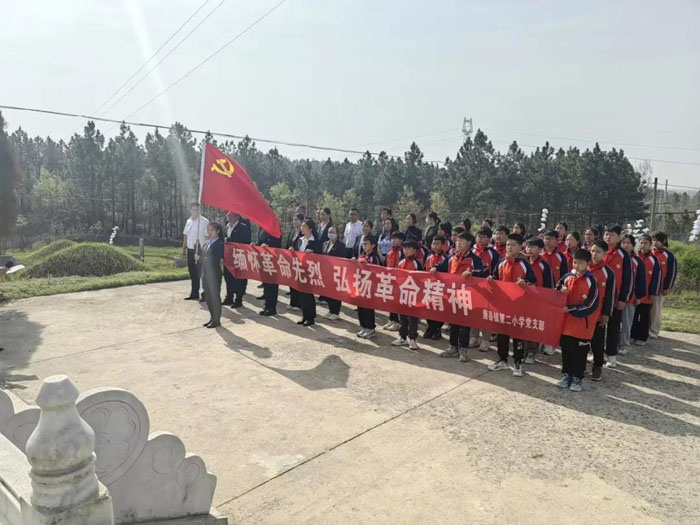 随州新闻网讯 (通讯员邱成林、马静)4月1日上午,唐县镇第二小学六年级部分优秀少先队员和全体党员教师,来到九龙山革命烈士陵园开展了以“缅怀革命先烈 弘扬革命精神”为主题的清明节祭扫活动。