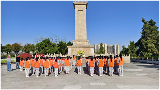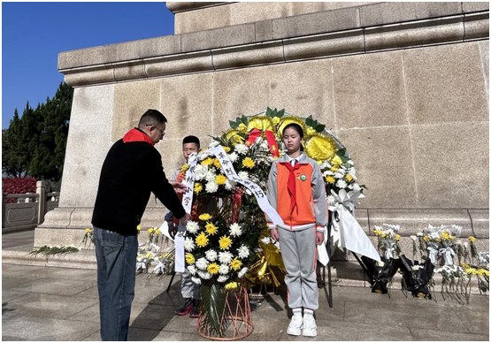精神长存,丰碑永驻。学校66名少先队员代表来到白云山革命烈士纪念碑前,神情肃穆、列队整齐。祭奠仪式在雄壮的国歌声中正式开始,本次祭奠仪式由五(4)中队褚辰熙主持。敬献花篮、整理挽联、默哀鞠躬、高唱队歌,队员们用少先队的最高礼仪表达了对革命英烈的哀思和敬意。