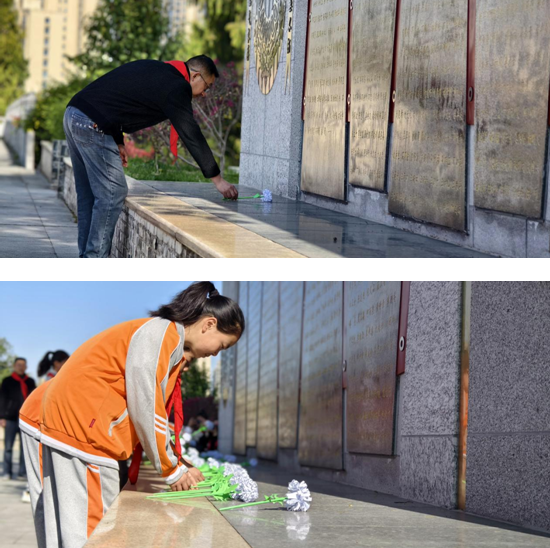 苍松映忠魂,鲜花寄哀思。烈士英名墙前,队员们敬献上自己亲手制作的小白花,他们知道一个姓名就是一个英雄的故事,一座丰碑就是一部血泪史。铭记历史,不忘初心,勇担使命,砥砺奋进是新时代少先队员的职责。
