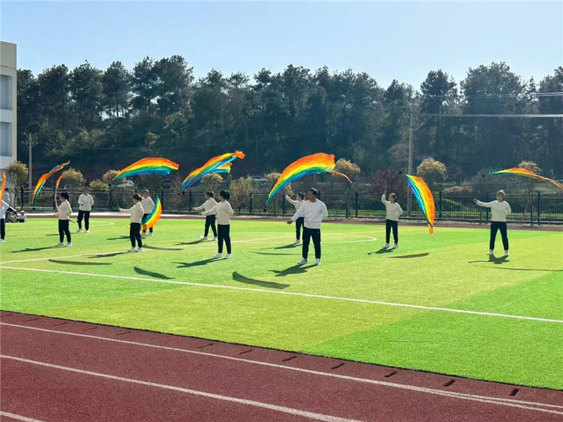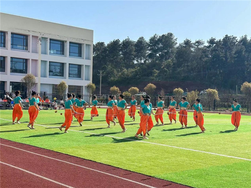 比赛现场,教职工们着装整齐,自信满满,精神抖擞,意气风发。随着动感的节奏,伸臂、弯腰、跳跃,精心设计的比赛动作舒展大方、规范协调,教师们用饱满的热情、青春的活力、整齐的队形展现了团体之美、运动之美。整个比赛高潮迭起,精彩纷呈,赛场掌声连连。