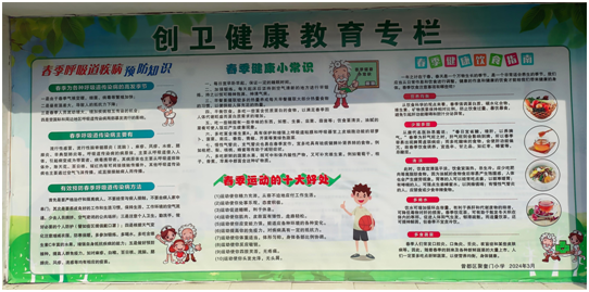 学校通过升旗仪式进行深入宣传,号召学生从爱护学校、学校周边、家庭环境卫生做起,为创卫做贡献;设立创卫小监督员,对校园内外乱扔垃圾、不爱护环境卫生的行为进行监督和教育纠正。创建文明校园争做文明师生。