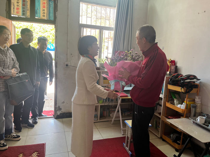 随州新闻网讯 (通讯员王楚雄)4月9日上午,随县人民政府副县长李琳、澴潭镇党委书记王文学、党委副书记、镇长金琼、随县教育局党委副书记、副局长鲍亚忠等一行,在澴潭镇中心学校校长彭伟的陪同下深入到澴潭镇涢水小学看望退休全国优秀教师王从伦老师。