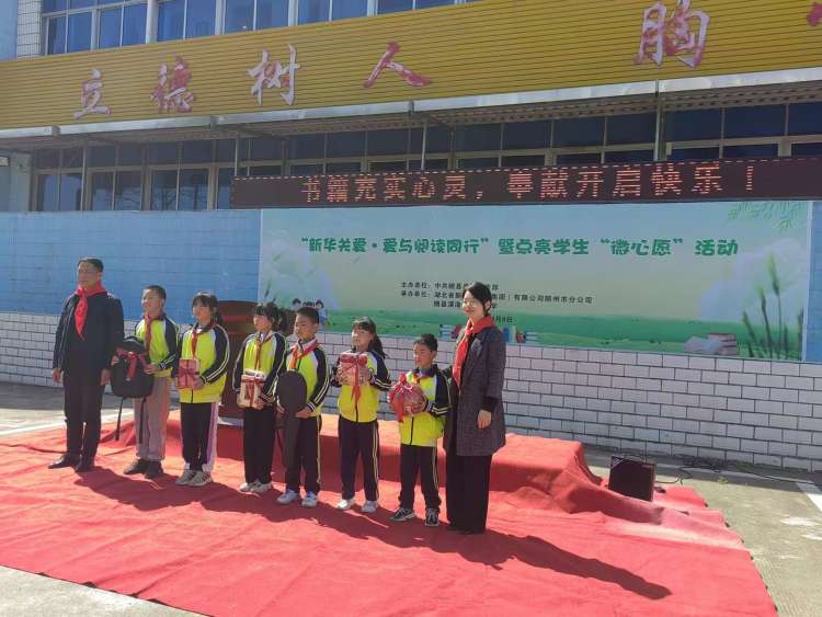 随州新闻网讯 (通讯员包明明)4月9日,随州市“新华关爱·爱与阅读同行”暨点亮学生“微心愿”活动在澴潭镇涢阳小学举行。活动由中共随县县委宣传部、湖北省新华书店(集团)有限公司随州市分公司、随州妇女联合会、随县澴潭镇涢阳小学联合举办。