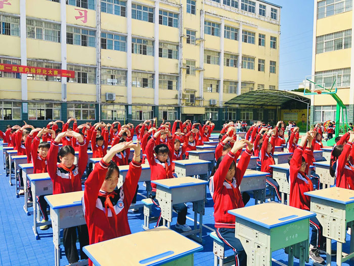 方寸课桌之间,展示活力校园!本次大课间室内操评比大赛活动充分展现了学生朝气蓬勃、奋发向上的精神风貌,培养了学生协调协作能力,进一步促进我校“双减”工作走深、走实,真正达到了“减负增趣”,以运动促学习的目的!
