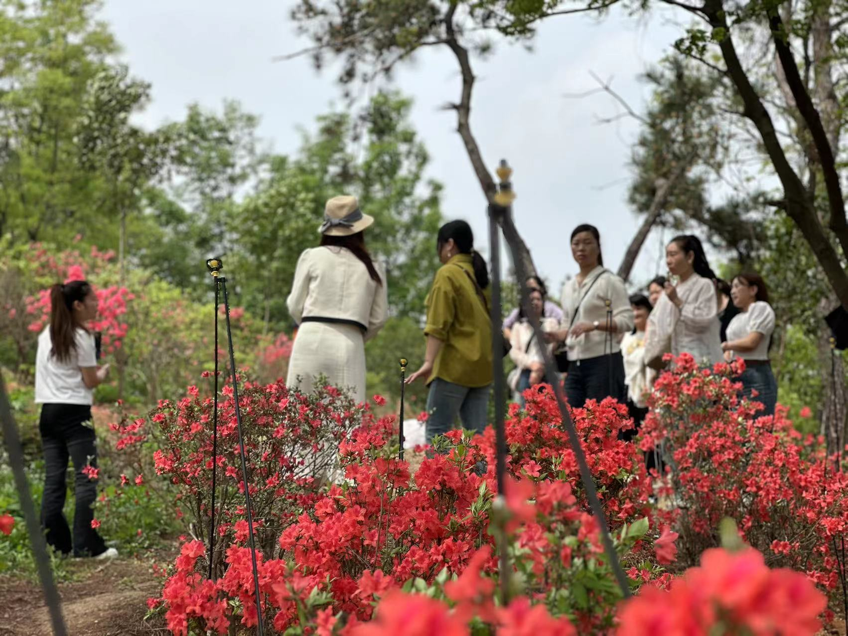 卧牛山上满山映山红与绿意盎然的春天交相辉映,花丛中、道路上,到处是赏花拍照的游客。