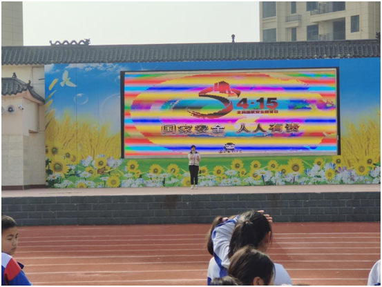 举行了“国家安全,人人有责”为主题的升旗仪式。通过国旗下讲话进行国家安全宣传教育,提高学生们的思想认识,加强自我防范能力,积极参加社会实践,让每个学生懂得:拥有国家安全,才会拥有和谐社会,才会拥有幸福美好的家园。并利用学校电子屏幕滚动播放国家安全教育日相关宣传语,营造宣传氛围,利用校广播站等校园媒介宣传安全知识,加强国家安全教育宣传工作。