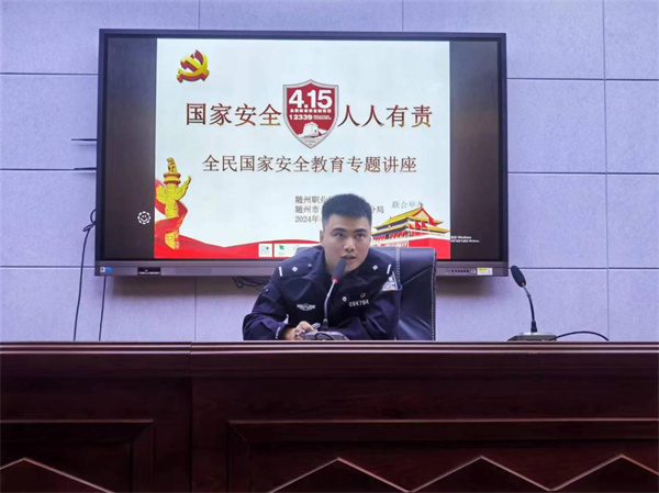 4月15日是第九个“全民国家安全教育日”,为切实提高师生的国家安全意识,加强国家安全法治宣传,营造维护国家安全的浓厚氛围,涢水派出所在随州职业技术学院开展“全民国家安全教育日”普法宣传活动,为在校师生开展国家安全知识讲座。