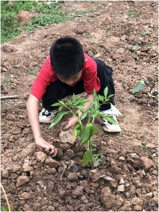 一颗颗幼苗,带着孩子们的期待,扎根在劳动基地,似乎在向孩子们说:“让我们迎着阳光一起努力成长吧!”