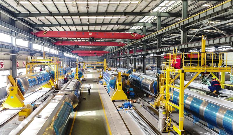楚胜集团半挂式油罐车生产线。(随州日报全媒记者李文军、通讯员郑闯摄)