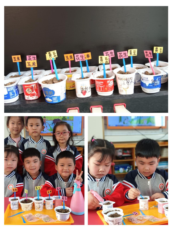 老师以绘本和观察的方式带领孩子们认识种子以及种植的工具,并变废为宝,用废旧的酸奶盒子当小花盆让孩子们自己完成松土、挖坑、播种和浇水。完整的种植过程,使孩子们感受到亲身体验劳动的乐趣。