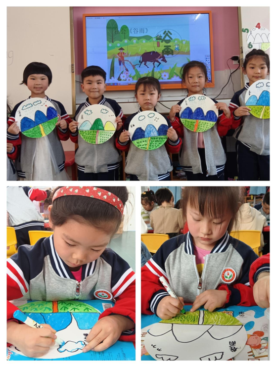 谷雨时节降雨频繁,故有“繁花随雨落,繁华扑面来”的民间谚语。孩子们通过绘画的形式表达了对雨中百谷的期待。