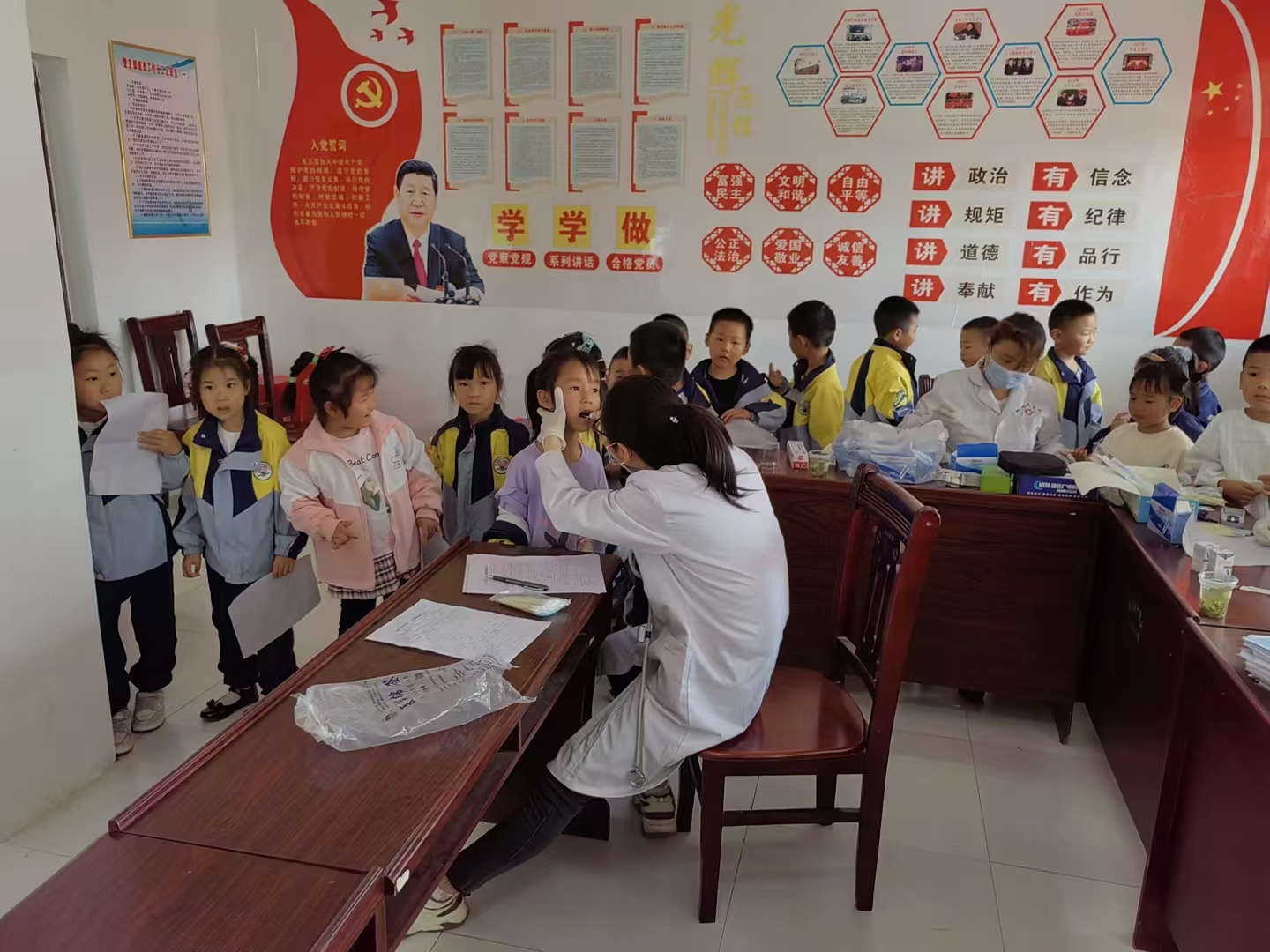 随州新闻网讯(通讯员:史春梅)为了全面了解学生的身体状况,引导学生从小养成健康良好的生活习惯,有一个强壮的体魄,近日新城卫生院的医生来到新城小学,为在校幼儿、一年级学生做全面详细的身体检查。主要项目有身高、体重、牙齿、视力、听力、内外科等。