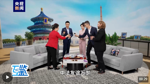 中法两国“酒文化”又有所不同,不过却都有“干杯”的说法,中外嘉宾共同举杯,共祝中法友谊长存。