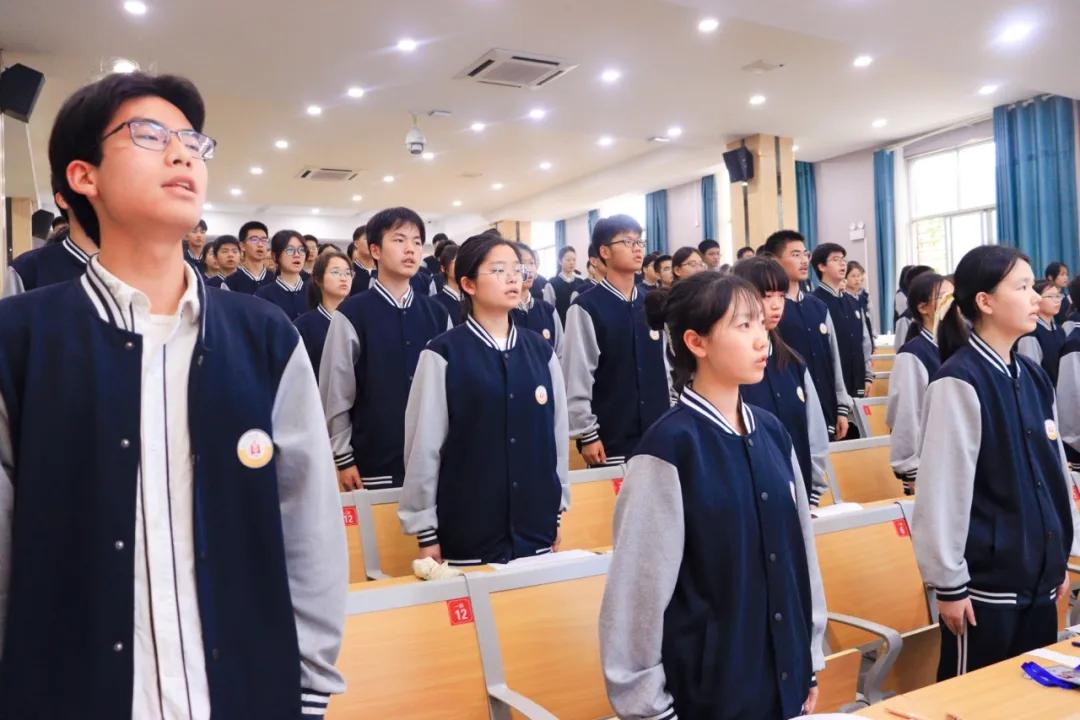 高一(21)班林初庚同学作为新团员代表发言。他表达了自己成为一名新团员的激动与自豪,也认识到,成为共青团员,意味着人生道路上的一次更新更高更远的起航,我们要以此为起点,秉持“修德笃学、止于至善”的校训,向上生长,向下扎根,不断发光发热。学先锋榜样、向优秀看齐,才能行稳致远。优秀团员代表高二(18)班余义源同学发言,他号召全体团员要听从组织召唤,积极参加团的活动,承担一名共青团员应该承担的责任,在团组织的领导下,不断奋斗,争做政治上的坚定者,思想上的先行者,学习上的佼佼者,行为习惯的表率者,真正从思想上加入到团的组织中去。