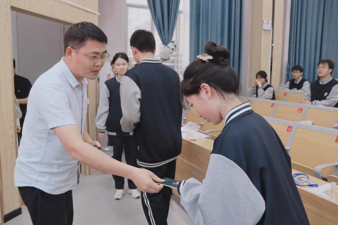校党委委员、副校长张龙龙逐一为新团员颁发团徽徽章和团员证。一面团旗就是一种信仰,一枚团徽就是一份力量,从佩戴上团徽这一刻起,团员们便将责任与使命铭记于心。