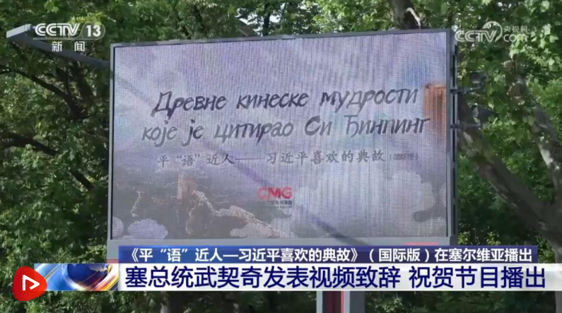 《平“语”近人——习近平喜欢的典故》(国际版)当地时间5月8日在塞尔维亚国家广播电视台第一频道独家播出,相关内容及其宣传片等还会在欧洲和全球近百家主流媒体陆续播发。
