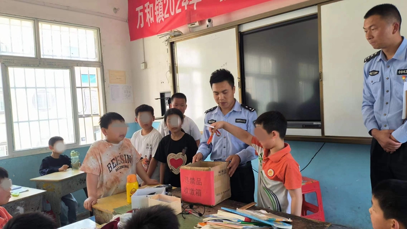 报告会上,田警官向同学们介绍“欺凌、性侵、电诈”表现形式及应对措施,要求同学们做到自尊自强自爱;报告会上,田警官与同学们同背“防溺水六不”,要求同学们入脑入心入行;报告会上,田警官向同学们进行珍爱生命教育,鼓励学生敞开心扉,向老师、家长倾诉,遇到困难可以寻求警察叔叔帮助。田警官向同学们介绍什么样东西是违禁品,违禁品管制要求,并现场在教室进行违禁品清查与收缴。