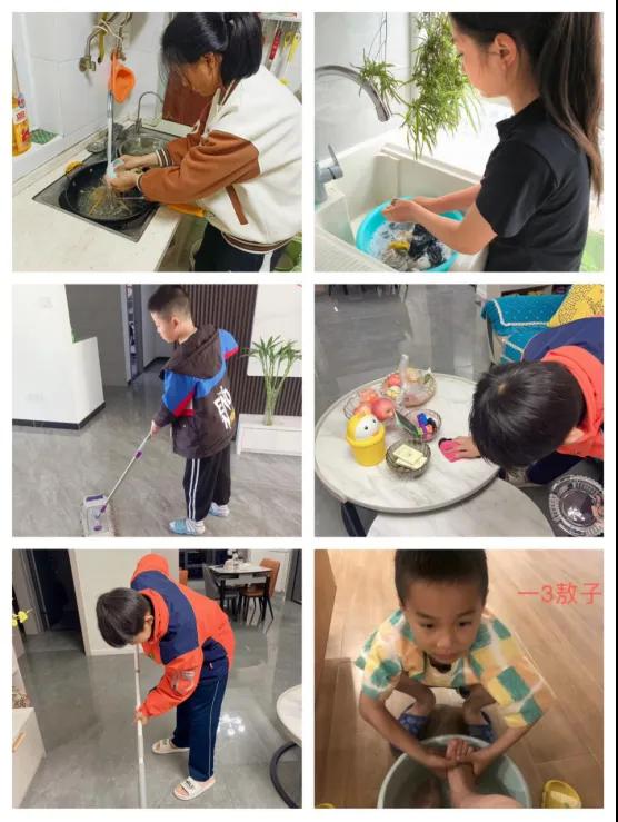 心怀感激意,力及报母爱。同学们回家为妈妈做一些力所能及的事,洗碗、擦地、捶背、洗脚等,高年级的学生回家为母亲做了一顿简单的饭,瞧,一个个“小厨师”拿起锅铲,有模有样地炒起菜来,不一会儿,一道道色香味俱全的菜肴端上了餐桌,香气扑鼻,令人垂涎!