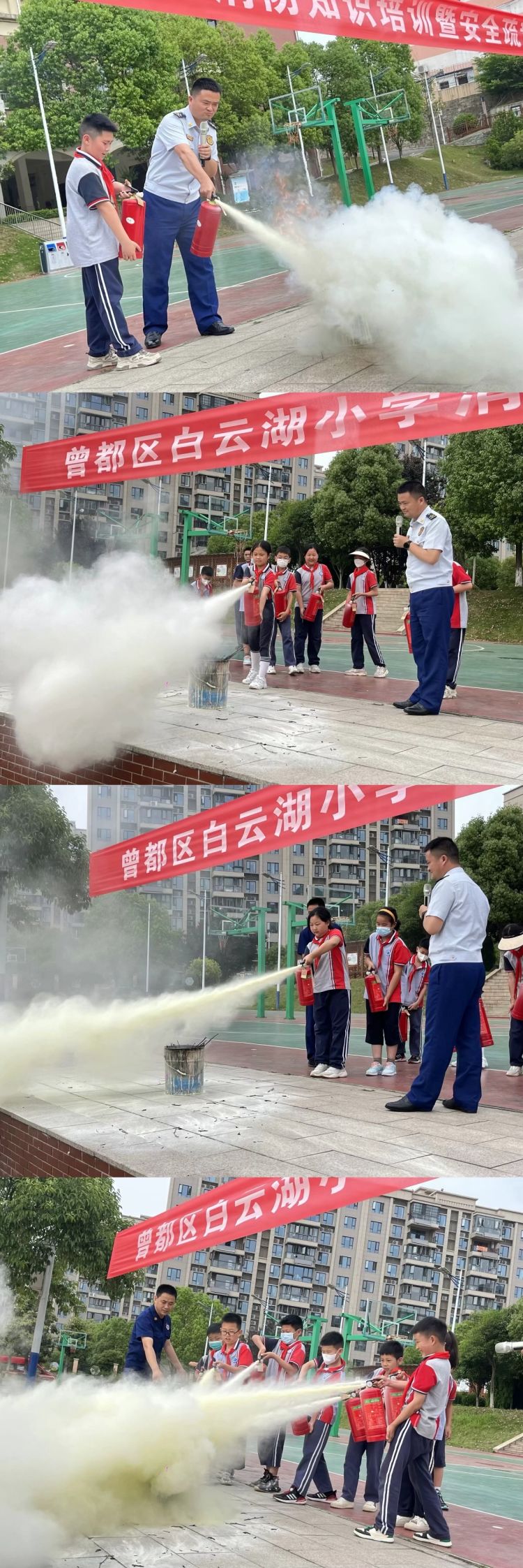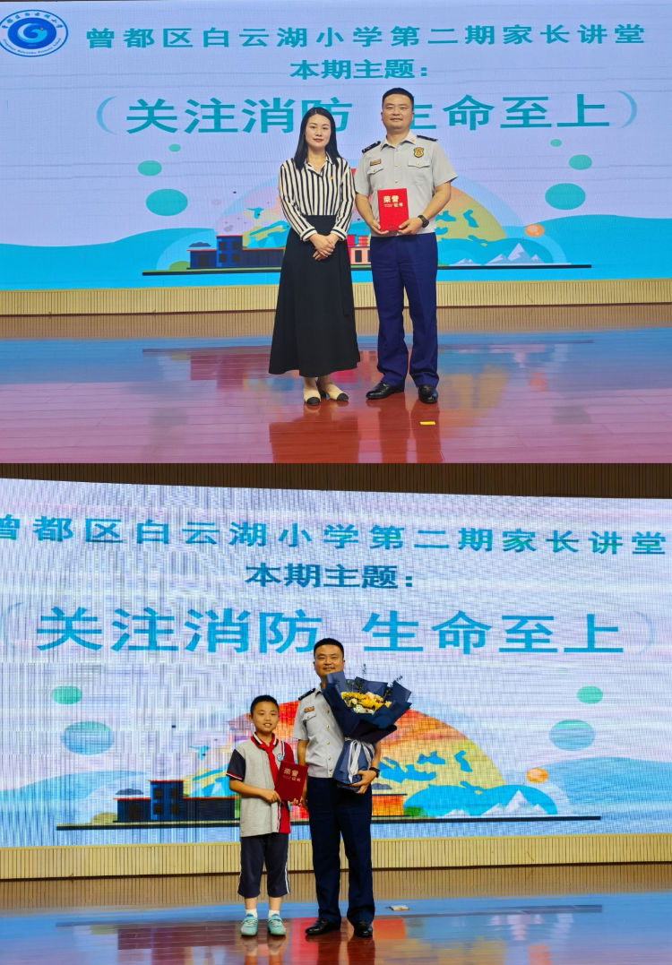 本期家长课堂通过家校合力,借助倾听、参与式体验的形式,孩子们增长了关于消防器材和消防安全的知识,增强了防范意识和应急逃生能力。今后,白云湖小学将继续开展好消防安全教育活动,一如既往地将安全教育渗透到日常教学中,为学子们的安全健康和快乐成长保驾护航!
