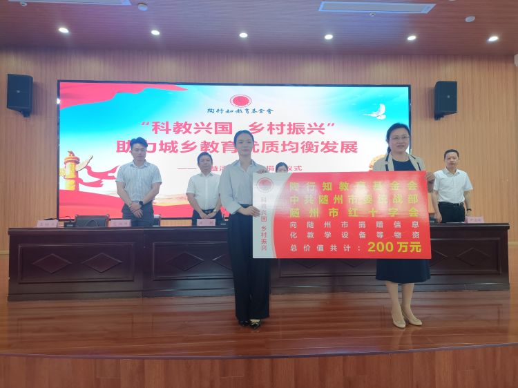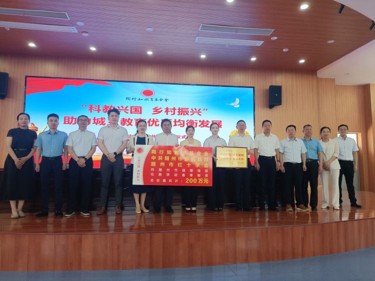 捐赠仪式上,陶行知教育基金会向随州市捐赠了价值200万元的信息化教学设备等物资,我市向陶行知教育基金会授荣誉牌匾及证书。