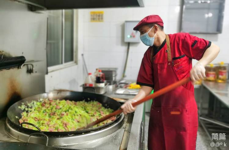 参观厨师制作饭菜,干净卫生、颜色丰富、营养搭配合理,符合初中生营养要求。