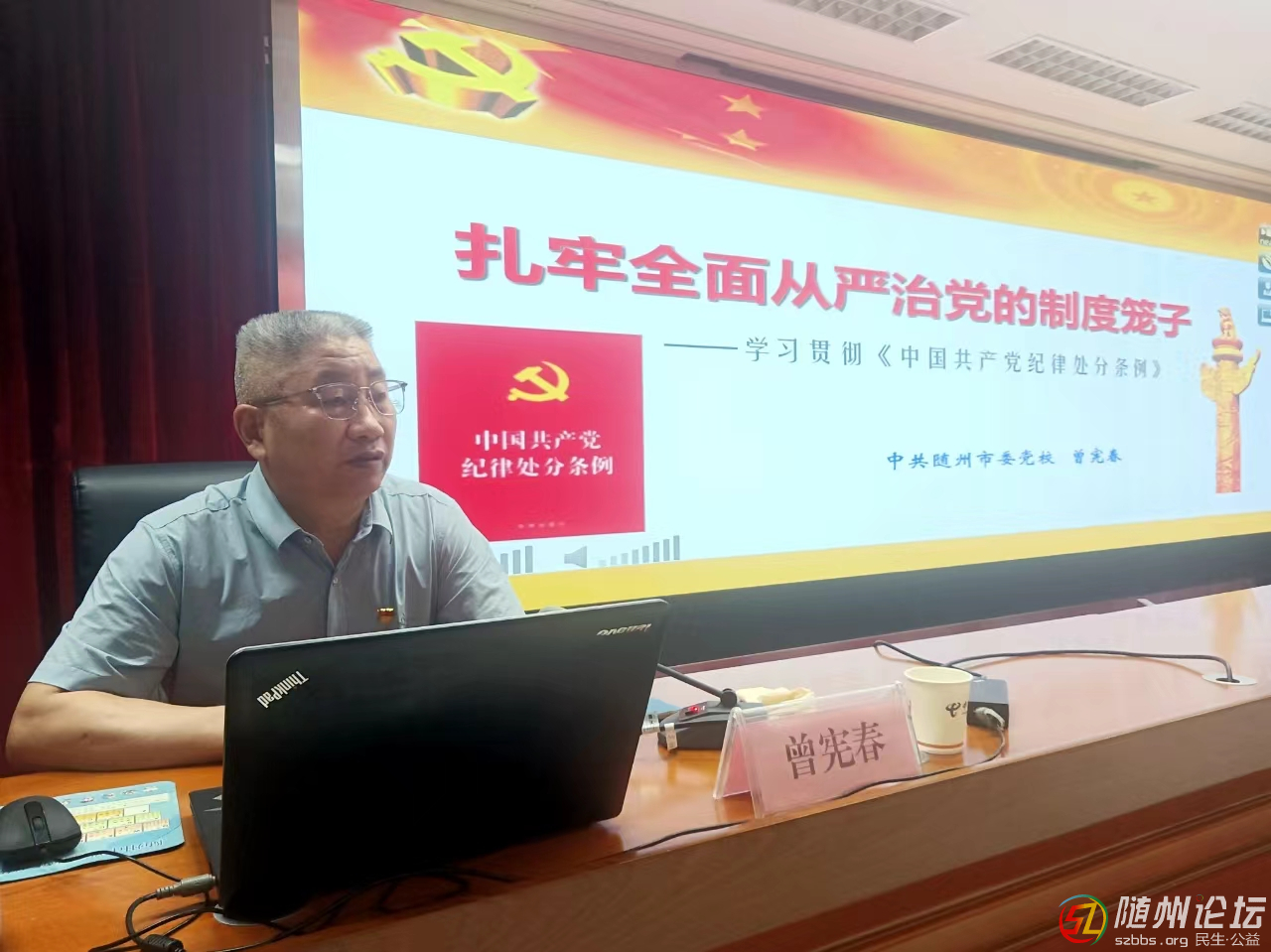 根据省公司党委、随州市委、市国资委党委工作部署,结合党纪学习教育计划安排,5月16日,中国电信随州分公司召开了全体党员大会。会上,中共随州市委党校校委委员、副教授曾宪春以《扎牢全面从严治党的制度笼子》为题讲授党课,对新修订的《中国共产党纪律处分条例》进行学习辅导。分公司全体党员干部分别通过现场、可视电话会议、天翼云会议等不同方式聆听了党课,同时观看了国有企业“靠企吃企”典型腐败案例警示教育片。会议由党委委员、纪委书记尹章利主持。