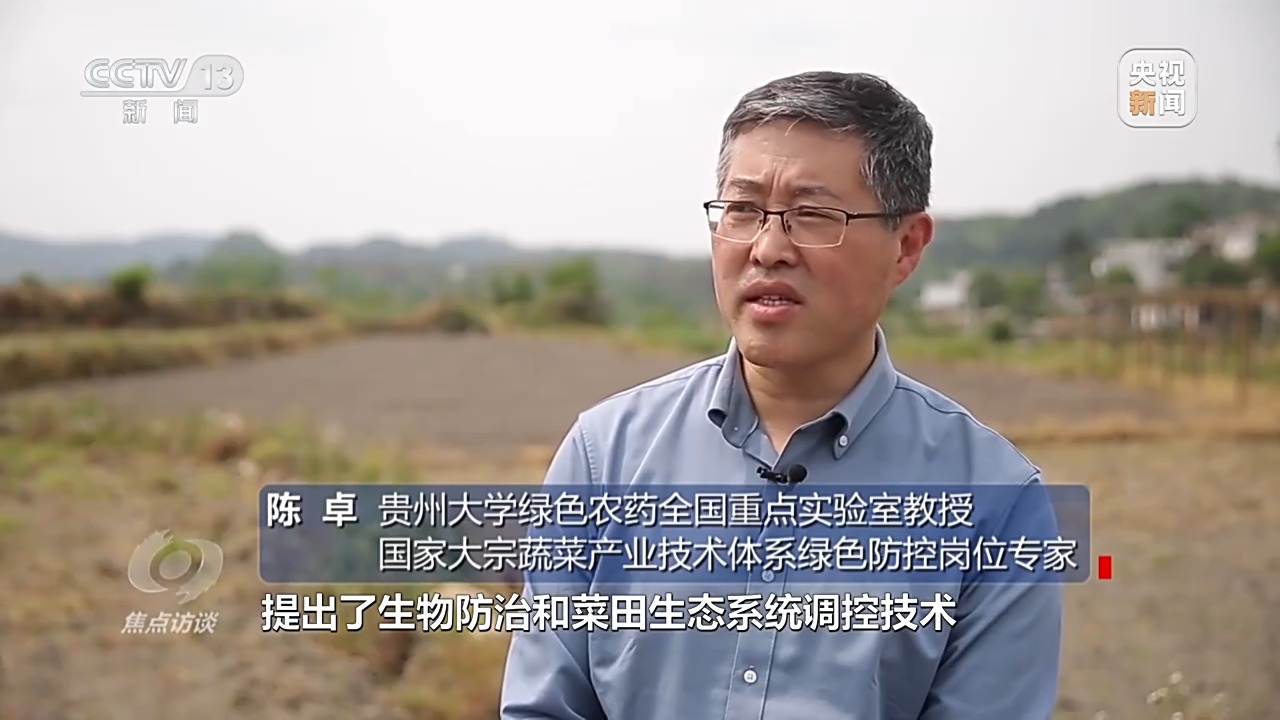 陈卓:“针对一些重大病虫害,我们开展实验示范,关键技术的研究和攻关,形成一套全程的绿色防控技术,提出了生物防治和菜田生态系统调控技术。”