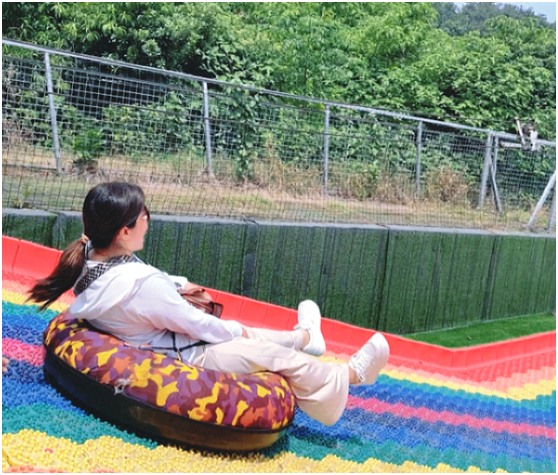 路上,张志刚老师狂野的歌声瞬间点燃了车内的热烈气氛,肆意驱散着工作的紧迫感,让老师们彻底放松下来。抵达目的地后,教师们怀着按捺不住的兴奋与急切,投入到各种丰富多彩的游玩项目中。那天空之境宛如梦幻之域,澄澈的镜面倒映着蓝天白云,远处的山峦也仿佛在脚下,周围的美景让人深深沉醉其中,仿佛踏入了一个空灵而绝美的仙境。而彩虹滑道更是充满了刺激与挑战,当从高处疾驰而下时,那种心跳加速的感觉让人兴奋到极点。在整个游玩过程中,教师们始终相互帮助、彼此鼓励,无论是面对困难还是享受快乐,大家都携手同行,将团队精神展现得淋漓尽致,每个人的脸上都洋溢着真挚而灿烂的笑容。