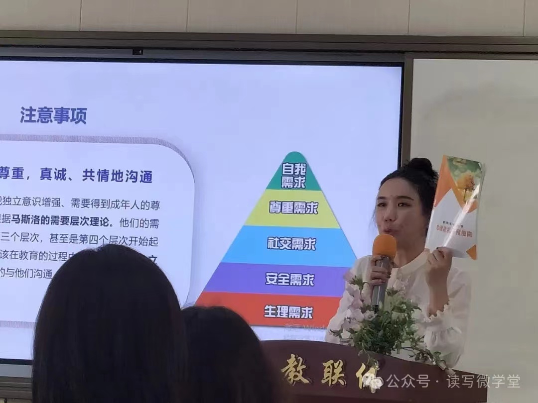 本期论坛以“爱在每一天 育见新成长”为主题,优秀班主任戢祥文、孙玲敏老师首先做了典型案例分享。紧接着,心理健康教师谌双梅为大家带来了一场“正确识别和处理学生心理健康问题”的知识讲座。她从“需要关注谁”“怎样关注”“发现问题后怎样处理和干预”等方面,为老师们详细地指点迷津。
