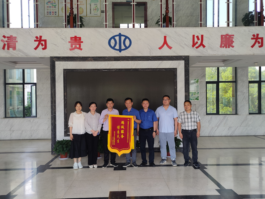 随州新闻网讯(通讯员 向征)5月17日,随州市水务集团有限公司派出代表向随县农村饮水安全工程建设管理办公室(简称“随县饮水办”)赠送锦旗“竭诚服务 情系民生”,对数年来随县饮水办为随县城乡供水一体化工程项目的谋划、规划和建设协调以及为随县乡镇供水体制改革工作推动所付出的努力和作出的贡献表示感谢,对打造出良好的营商环境表示认可,并对全体工作人员在长期工作中展现出的优良服务态度和爱岗敬业品质表达敬意。