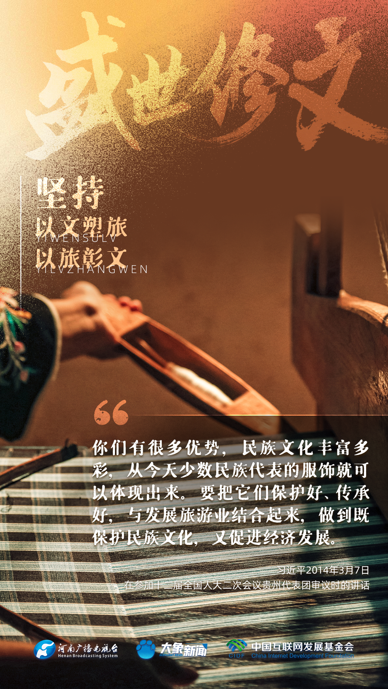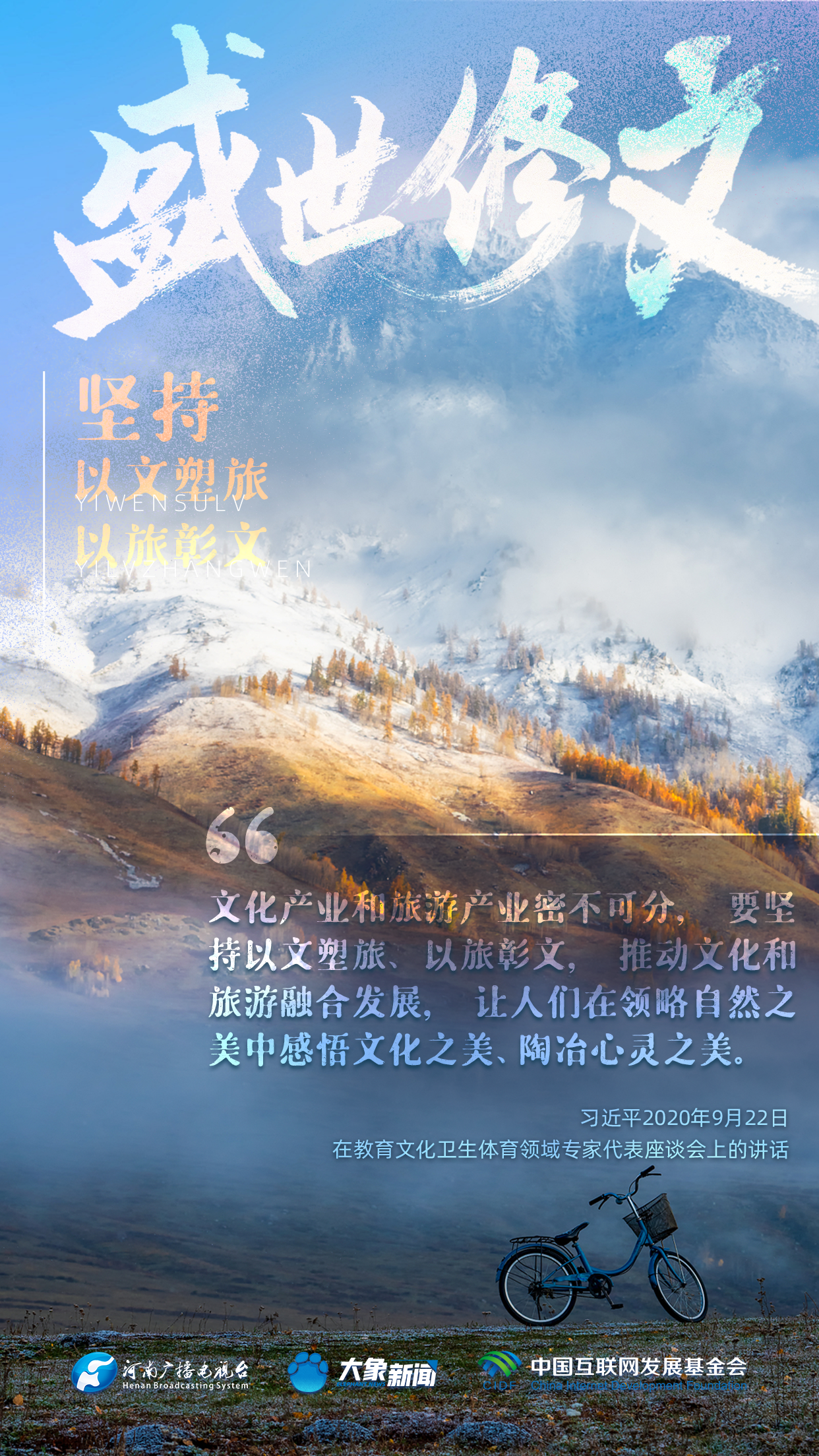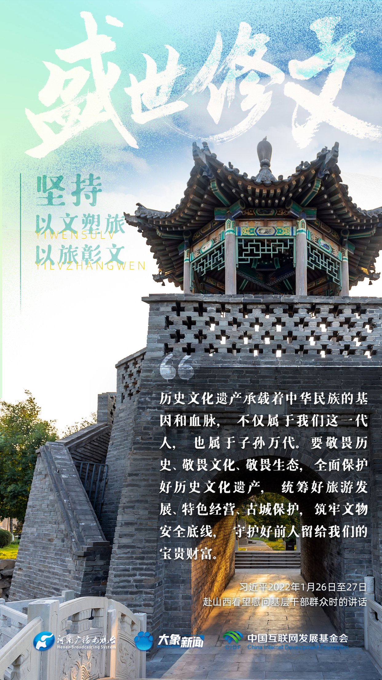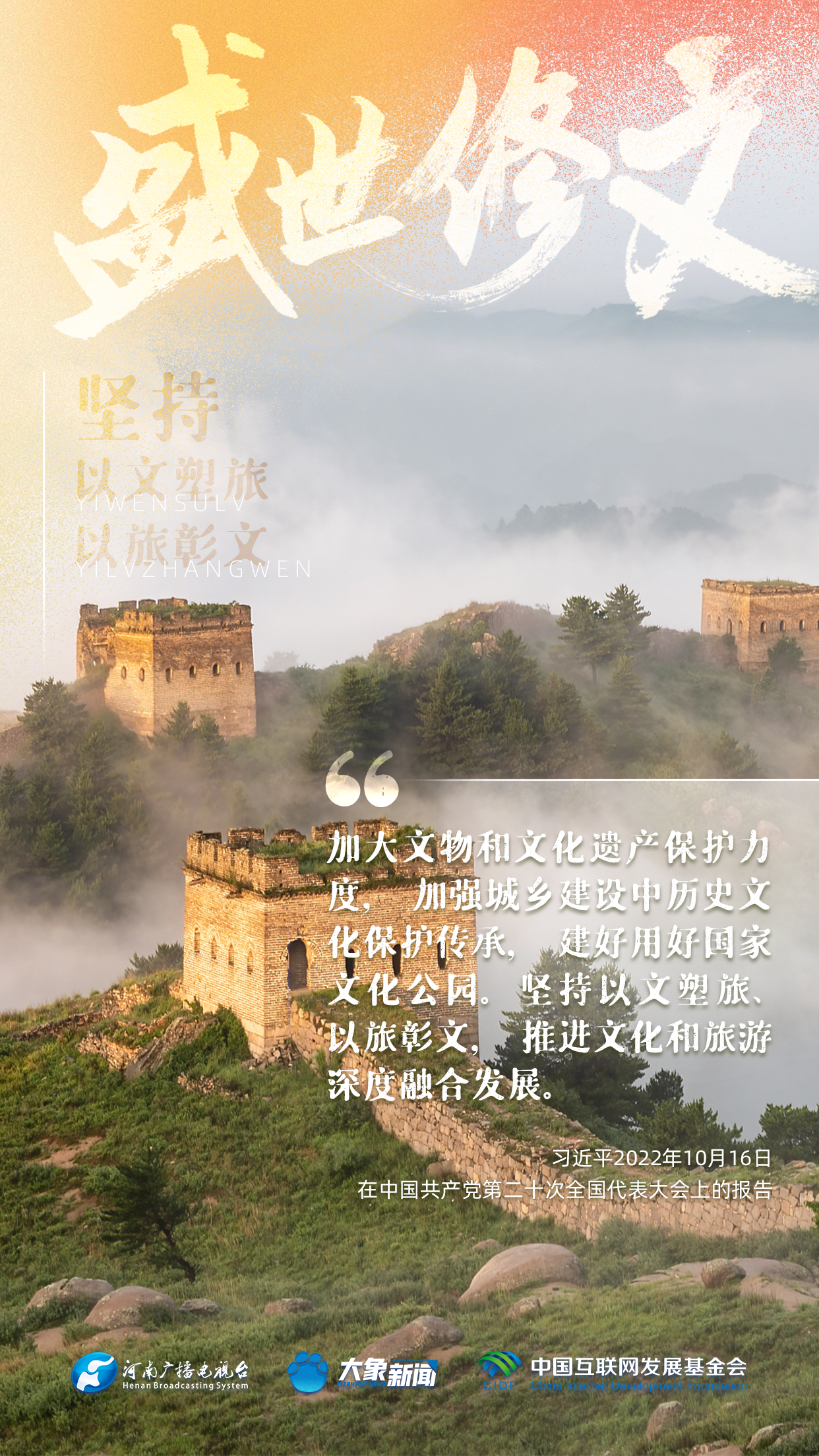 今天推出:习近平文化思想金句之《盛世修文|坚持以文塑旅、以旅彰文》