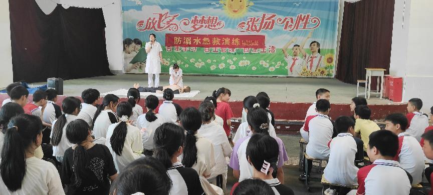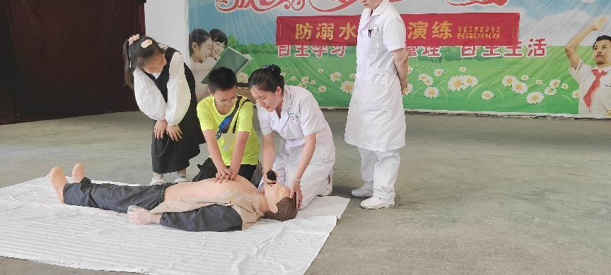 随州新闻网讯 (通讯员鲁翔)烈日当空,酷暑难耐,炎热的夏日是最适合进行各种水上活动的季节,同时也是青少年溺水事故的多发期,为避免此类悲剧的发生,保障青少年的健康安全。5月21日下午,万福店农场中心学校联合万福店卫生院为500余名师生开展防溺水演练及应急救护知识专题培训活动。