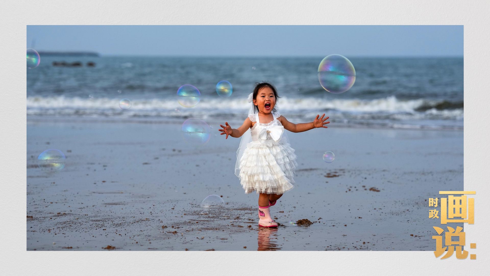 △日照阳光海岸绿道上的万平口景区,一对游客在海浪中翩然起舞。