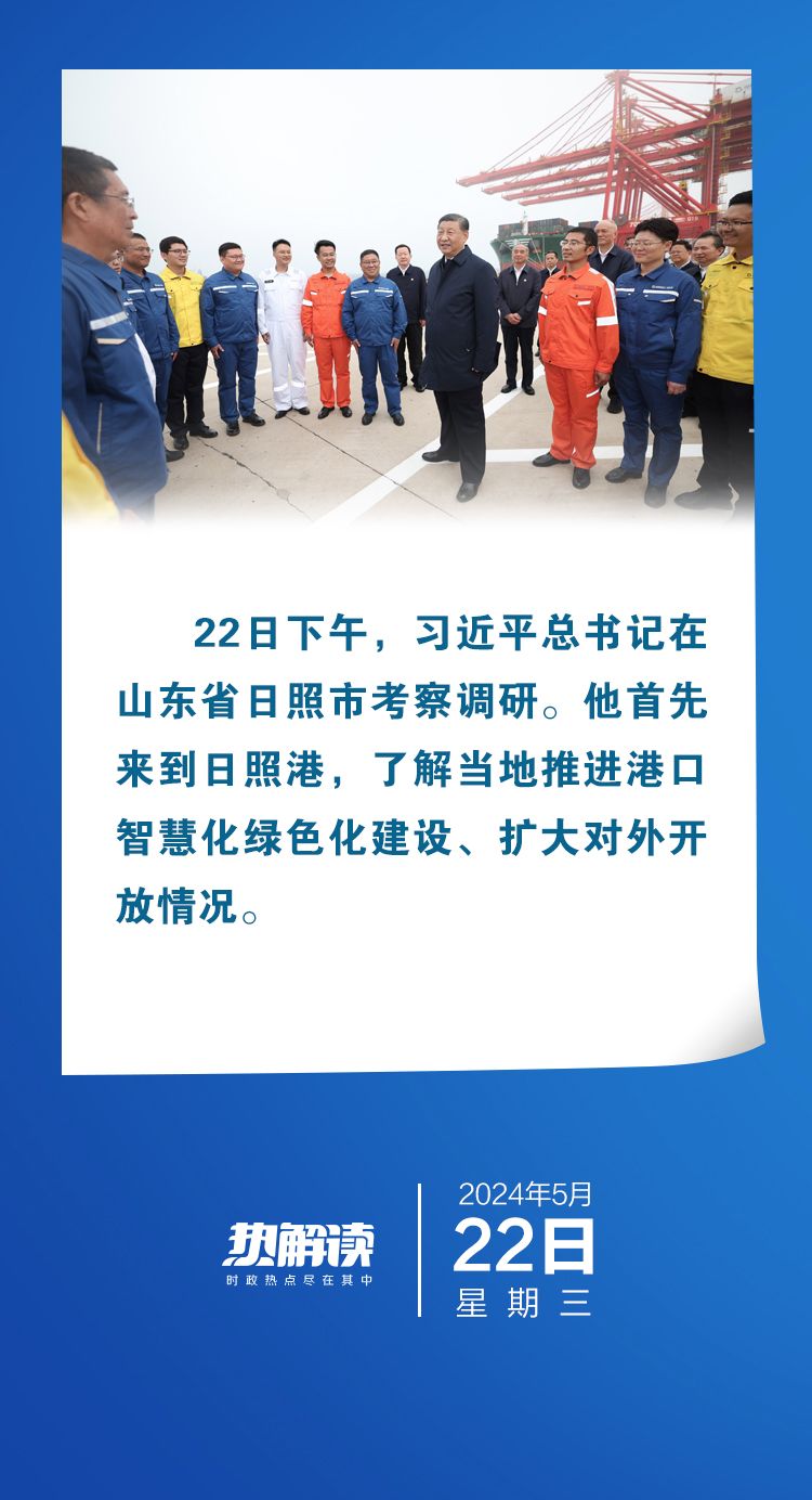 5月22日,习近平总书记在山东日照考察,第一站就来到日照港。在这里,总书记重点关注了两个方面——港口智慧化绿色化建设和扩大对外开放。