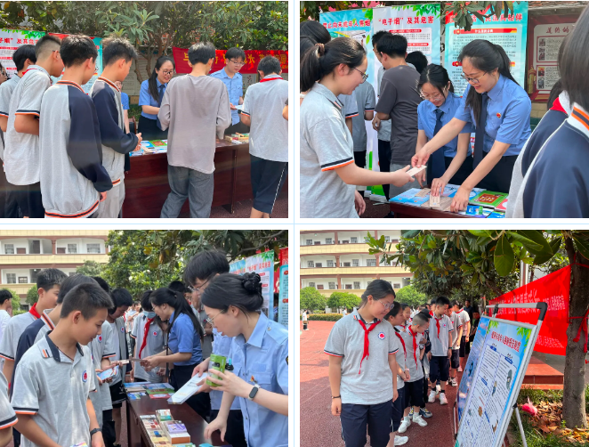 活动最后,学生们自发参观法治宣传展板和宣传册,兴趣十足,更是有不少同学围在仿真毒品模型、传统香烟与电子烟样品前认真辨认、讨论,一个接着一个的提出问题,现场气氛热烈非常。