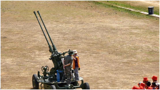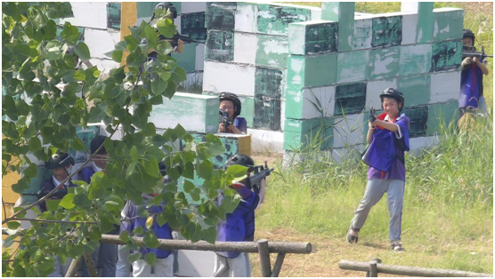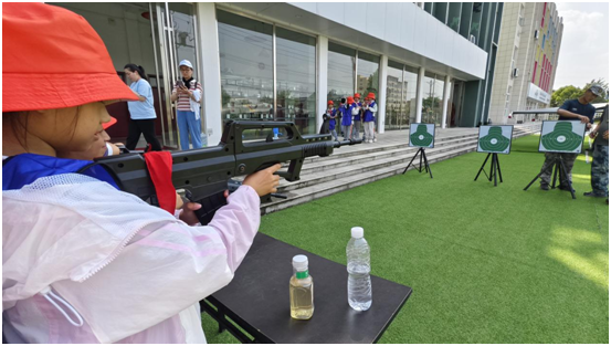 活动伊始,一场庄重的拥军爱国活动启动仪式在基地的操场上举行。总教官发表了热情洋溢的讲话,鼓励孩子们要珍惜此次难得的机会,努力学习军事知识,传承红色基因。随后,教官们就分组带领学生有序开展研学实践。在教官的讲解与实操中,学生认识并乘坐坦克、体验高射炮发射、真人CS战术演练、射击、应急抢救等军事项目。活动中学生们热情高涨,积极参与各项实践活动,认真听取讲解,踊跃提问。在射击训练场上,他们聚精会神地瞄准目标,每一次射击都充满了期待与兴奋;在真人CS战术演练中,他们化身小战士,勇敢地面对“敌人”,展现出顽强拼搏的精神风貌。