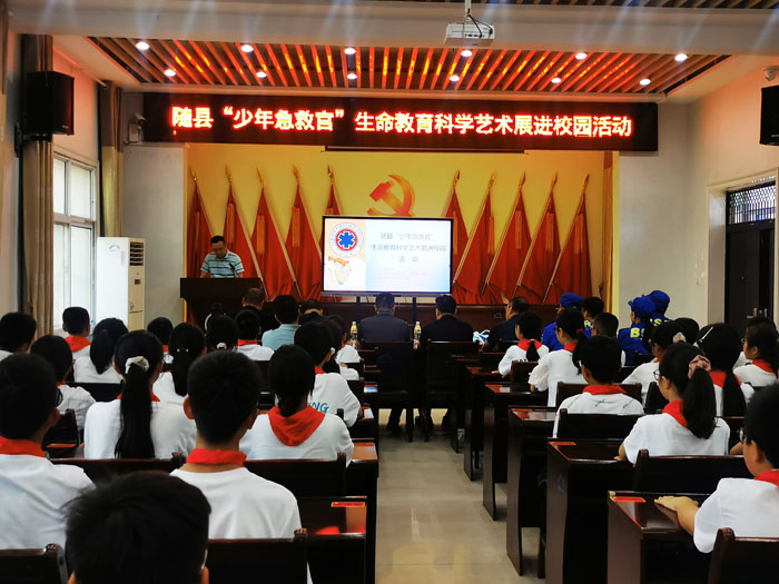 当天,随县委统战部联合县教育局、县新联会和随州蓝天救援队在厉山镇中心学校举办了随县“少年急救官”生命教育科学艺术展进校园暨“爱心助学 点亮希望”公益活动。新联会秘书长牛靖恒代表“少年急救官”团队提出《“急”你所急 “救”在身边》倡议。随州蓝天救援队队长李长长给大家上了一堂“少年急救官”生命安全教育公益课,教育孩子们珍爱生命,敬畏生命,真正掌握应急救护知识,学会自救互救技能。