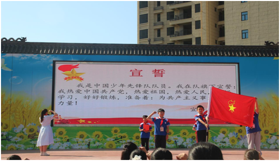 本次入队仪式暨“一星章”颁章仪式为学校少先队组织注入了新活力,相信少先队员们必将以“红领巾奖章”争章活动为依托,树立远大理想,培养优良品德,练就过硬本领,厚植爱党爱国爱社会主义的情怀,让红色基因融入血脉,以实际行动逐梦新时代,为红领巾增添光彩,争做新时代好少年!