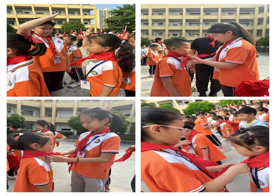 在光荣的队旗下,在星星火炬的见证下,新入队的小队员们迈开了人生成长的第一步。相信新队员在一系列入队活动中,红色的种子已在心中生根发芽,这一刻将永远留在他们的脑海中,新队员们必将在队旗下茁壮成长!少年强则国强,愿新入队的小队员们不负使命,努力学习,报效祖国,祖国未来必将繁荣昌盛!