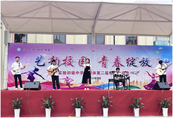 “声声入耳、声动我心”吉他的和弦、乐队的演奏弹出了实中学子的心声,唱出了他们对校园生活的美好憧憬。