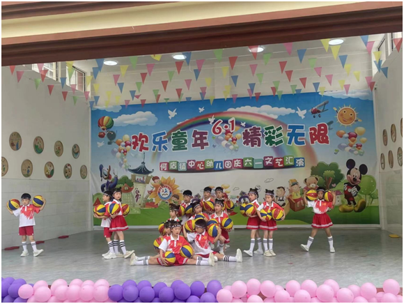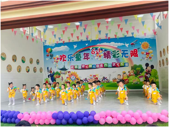 在孩子们的欢声笑语中,何店镇中心幼儿园“欢乐童年,精彩无限”庆六一文艺汇演拉开帷幕!伴随着激情的音乐,小一班《小鸡咯咯哒》、中一班《礼貌娃娃》、中二班《爱跳舞的小怪兽》、大一班单舞《太平女儿鼓》、大一班集体舞《孩子的天空》、大二班单舞《小城谣》、大二班集体舞《街舞少年》、大三班《千字文》、大四班《冰淇淋的味道》、篮球操及幼儿园教师舞蹈《象王行》等精彩纷呈的节目轮番登场。。