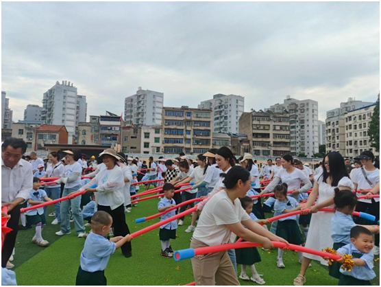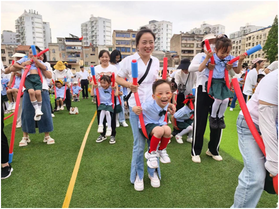 随州新闻网讯 (通讯员冯晓平、邓祎睿)为优化学校营商环境,进一步加强学校与家庭间的密切联系,为学生提供更优质的教育服务,5月29日,文峰学校附属幼儿园在学校大操场上举行了“小手牵大手、共筑奥运梦”庆六一亲子运动会。这不仅仅是属于孩子们的庆典,也是家长们“永葆初心”的“时光机”,更是一场爱与责任的双向奔赴。大朋友和小朋友们欢聚一堂,共享运动带来的欢乐与激情,共同庆祝即将到来的2024年巴黎奥运会。