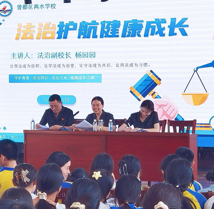 随州新闻网讯 (通讯员罗芳芳)5月31日,区法院执行局执行指挥中心负责人兼两水学校法治副校长杨园园,到学校开展主题为“法治护航健康成长”的法治教育讲座。