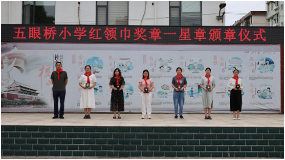 随州新闻网讯 (通讯员谢珊珊、高莹))为不断激发少先队员的光荣感、使命感和责任感,进一步构建少先队阶梯式成长激励机制。6月3日,曾都区五眼桥小学隆重举行了2023——2024学年“红领巾奖章”一星章颁章仪式。