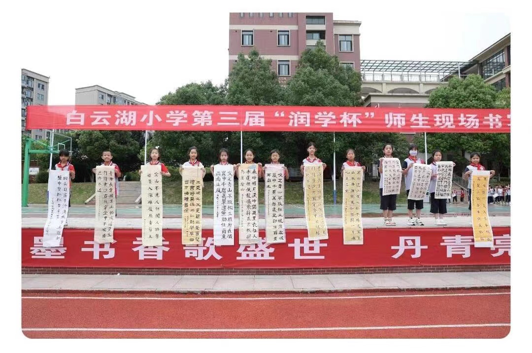 白云湖小学全校师生始终坚持以“认认真真写字”为起点,“踏踏实实做人”为目的,把学校书香校园建设和文化传承完美结合起来,逐步形成自己的特点,今后学校将携手创造出更有筋骨,更有力量,更有温度的校园特色,书写不负时代的永恒经典!