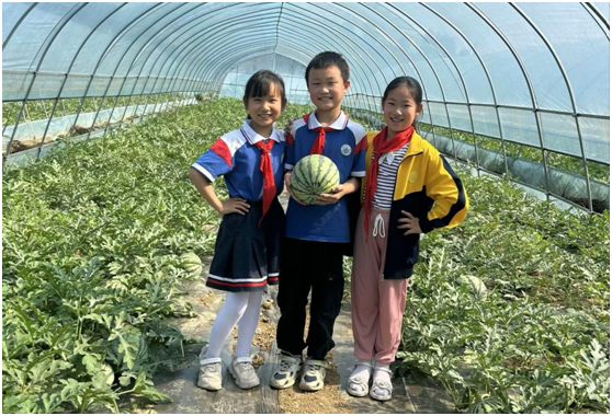 孩子们听了采摘员的讲解后,都迫不及待地在青藤绿叶间观察着,一个个圆溜溜的西瓜掩映在藤蔓之间,圆润饱满;长势喜人的圣女果挂满枝头,散发着诱人的光泽。他们或蹲或站,或摘或捡,边采摘边分享自己的发现。一个小时后,孩子们吃着酸甜可口的圣女果,甜脆爽口的西瓜,一个个满是幸福的享受。