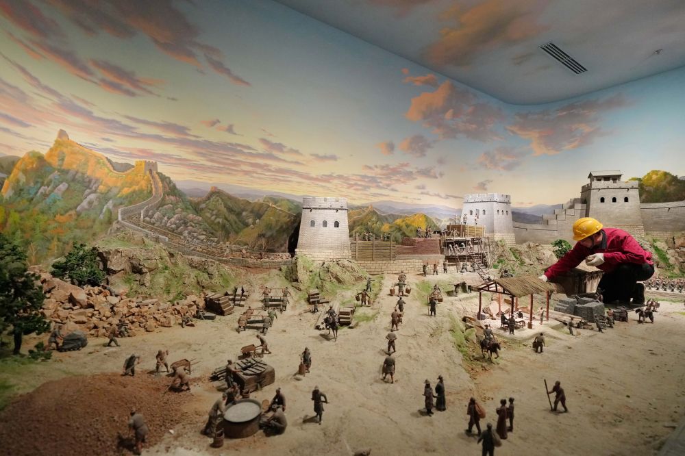 工人在山海关中国长城博物馆展厅布展(2024年4月11日摄)。新华社记者 杨世尧 摄