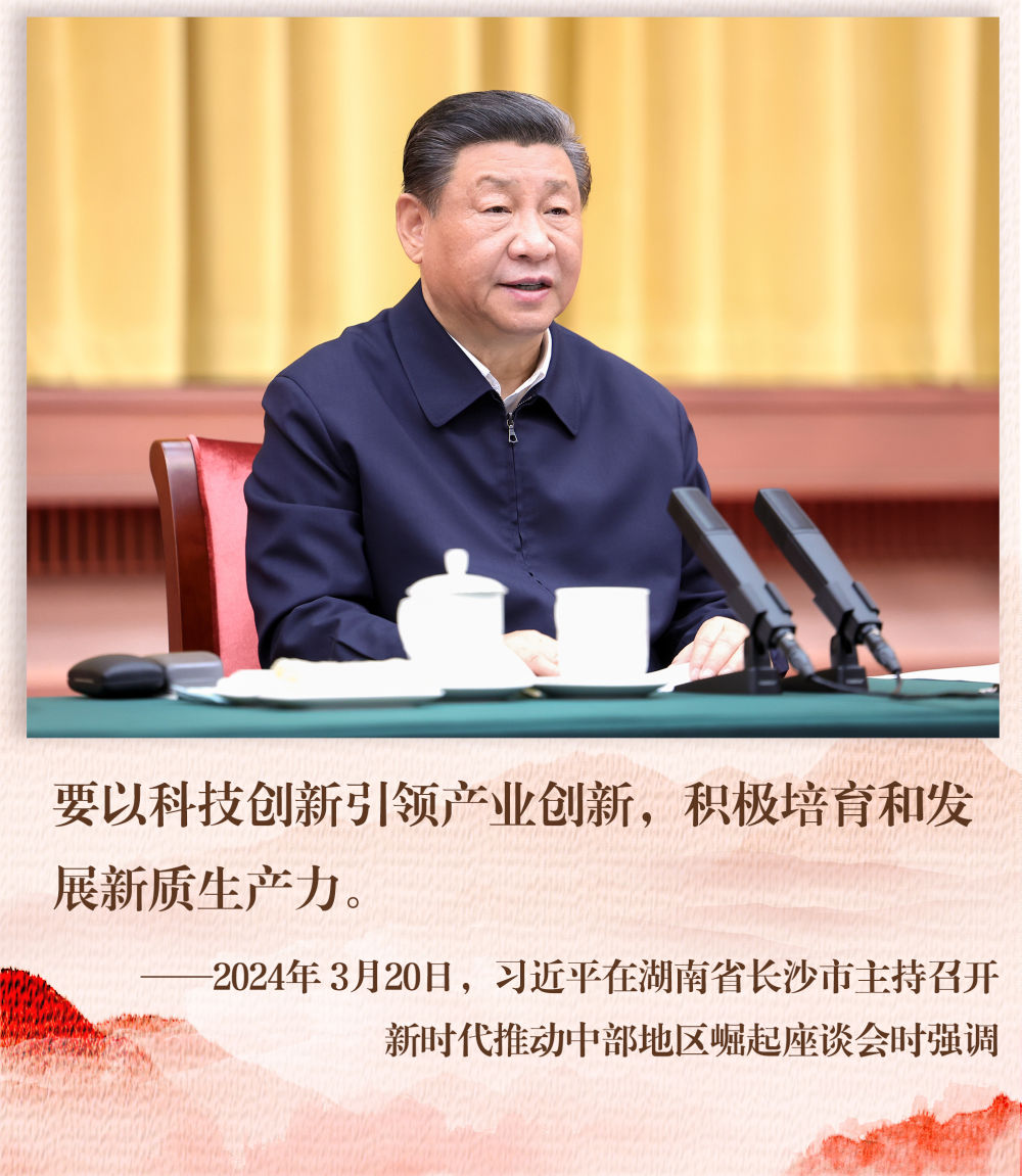 在2019年召开的推动中部地区崛起工作座谈会上,习近平总书记强调“在实施创新驱动发展战略、发展战略性新兴产业上下更大功夫”。今年,总书记主持召开新时代推动中部地区崛起座谈会时,进一步强调“要以科技创新引领产业创新,积极培育和发展新质生产力”,为中部地区壮大先进制造业指明方向。
